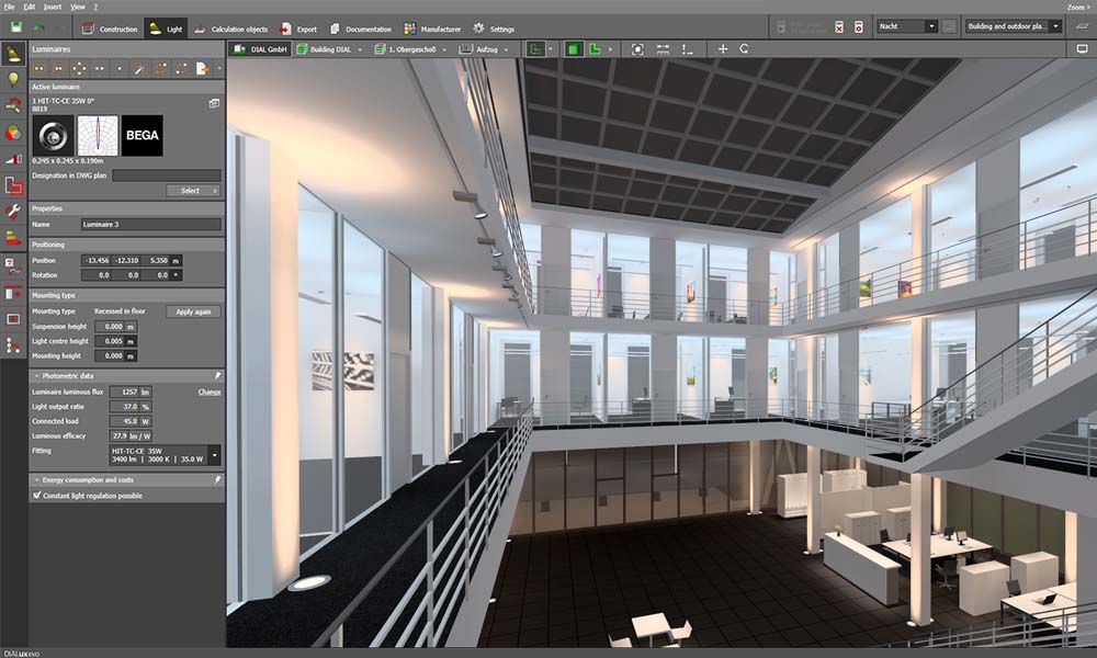 Durch die detaillierte und komplexe Simulation der optischen Einflüsse anhand von Position und Anzahl der Leuchten, sowie deren Leuchtverhalten über die Zeit lässt sich Ihr Lichtplan mit DIALux genau darstellen und bearbeiten.Für Ihre individuelle Beleuchtungslösung können Sie außerdem auf Leuchten mit verschiedenen Wattzahlen und Farbtemperaturen zurückgreifen. Damit können Sie teures Geld sparen und Ihre Sorgen minimieren.